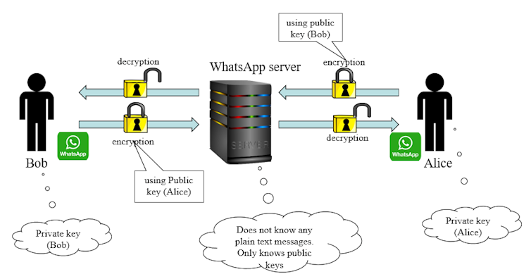 The government proposal says “you don’t even have to touch the encryption” to implement ghost protocol. End-to-end encryption works by generating a pair of public and private keys for each user. Text encrypted using the public key can only be decrypted using the private key, and vice versa.
